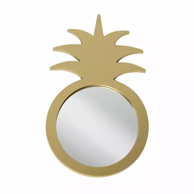 Miroir Ovale Ananas, Dorée, L.30 X H.50 Cm